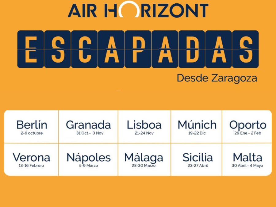 Gracias al convenio firmado entre COGITIAR y la compañía de vuelos aragonesa Air Horizont, todos nuestros colegiados y precolegiados se beneficiarán de un 5% de descuento en sus programas de escapadas.
