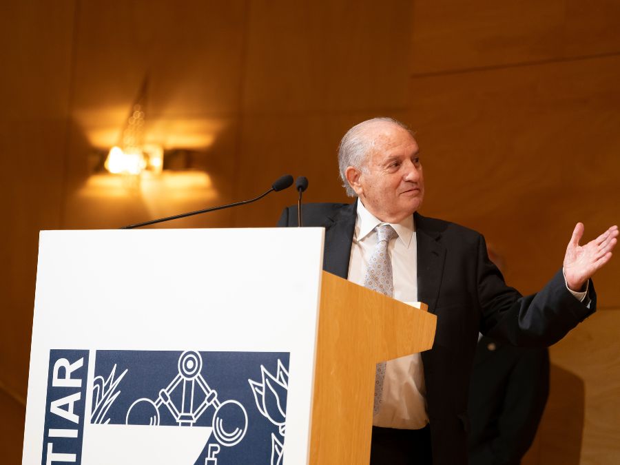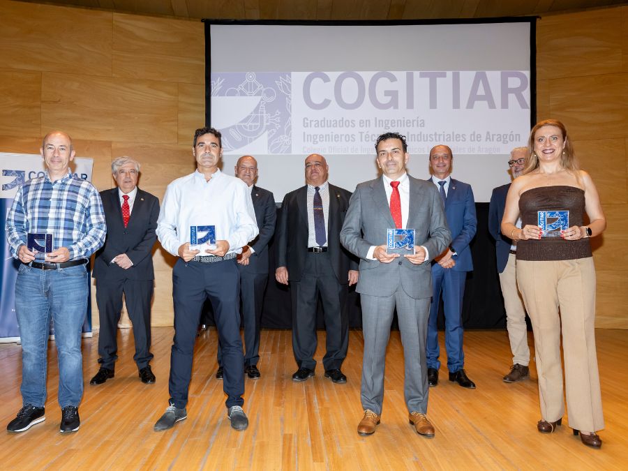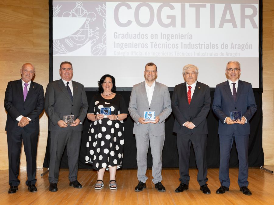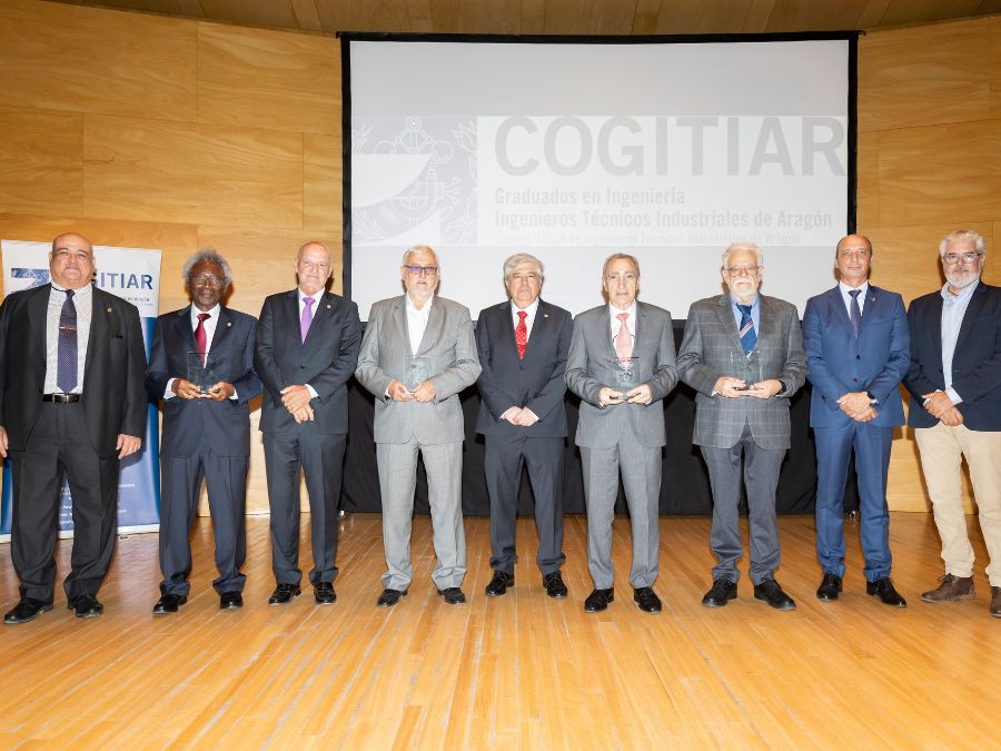 Uno de los momentos estelares de la jornada fue la entrega de la insignia de oro de COGITIAR a su exdecano, Juan Ignacio Larraz Plo, quien recogió el galardón, emocionado y agradecido, rodeado de toda su familia y amigos. El homenaje se hizo extensivo después a los socios de mérito de la Unión de Asociaciones de Ingenieros Técnicos Industriales y Graduados de Ingeniería de la rama industrial de España (UAITIE): Benjamín Jarné García, Luis Ángel Carbó Llorente y Sergio Mostajo Elvira.