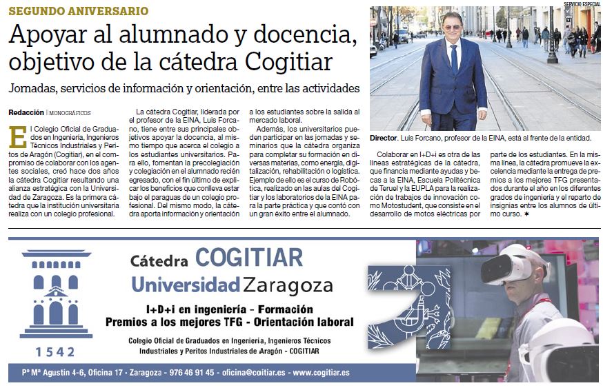 La entrevista, publicada en un suplemento especial de El Periódico de Aragón, se hacía eco de la Cátedra de COGITIAR