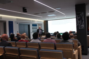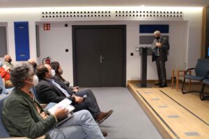 Sancho explicó algunas de las características de las centrales hidroeléctricas reversibles o de almacenamiento por bombeo, que permiten el almacenamiento de energía mediante el bombeo de agua desde un embalse inferior a otro superior próximo y su conversión de nuevo en energía eléctrica por turbinación. “Es imprescindible para la transición energética fiable y para un sistema eléctrico basado en energías renovables”, afirmó. El ponente ilustró su charla con datos: en el mundo hay 158 gigavatios (GW) de potencia instalada (lo que supone un 94% de capacidad de almacenamiento), cifra que en Europa se reduce hasta los 57 GW. “En España hay actualmente 3,3 GW de bombeo puro y 2,7 GW más mixto”, señaló.