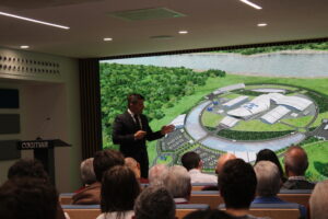 Durante su exposición, Sancho dio pinceladas de ejemplos configuraciones innovadoras de centrales reversibles mostrando proyectos que se están llevando en todo el mundo, en los que, entre otras soluciones, se emplea el mar como embalse inferior, o se colocan placas solares sobre el mismo embalse. Y, como la mayoría de los proyectos que afectan al medio ambiente, el tema de ayer suscitó algunos momentos de polémica y puntos de vista contrapuestos. “Prácticamente por cualquier cosa, todos los proyectos parecen imposibles. Pero no conozco a nadie que haya hecho una tortilla sin romper un huevo”, destacó. “En resumen, el objetivo fundamental del almacenamiento hidráulico es hacer viable una descarbonización de la economía”, añadió.