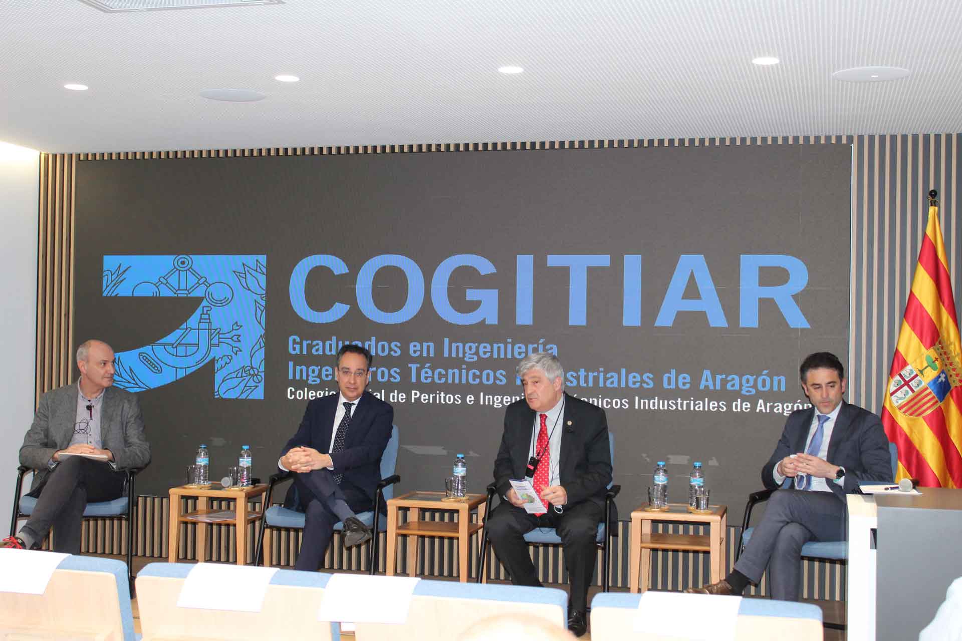 La primera de las jornadas reunía a tres primeros espadas de la ingeniería y de la energía como son el presidente del Consejo General de Colegios Oficiales de Graduados e Ingenieros Técnicos Industriales de España, José Antonio Galdón; el director general de Endesa en Aragón, Ignacio Montaner, y el delegado regional Nordeste (Aragón, Cataluña y La Rioja) de Red Eléctrica de España, José Ignacio Lallana.