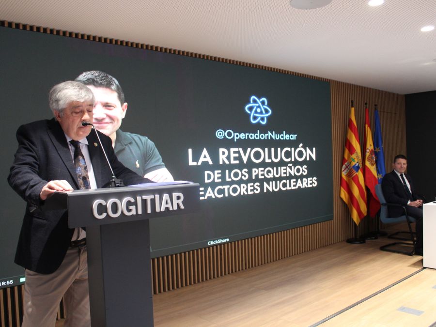 Con un salón de actos a rebosar, COGITIAR clausuró ayer la 23ª edición de sus Jornadas de Energía y Medio Ambiente por todo lo alto con Alfredo García, más conocido en el mundo virtual como ‘OperadorNuclear’. Además de un buen número de colegiados, muchos de sus seguidores zaragozanos se acercaron a escuchar su ponencia sobre ‘La revolución de los pequeños reactores nucleares’ y aprovecharon, también, para que les firmara alguno de sus libros.