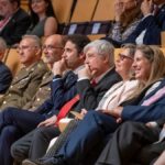 Larraz nombró también a colegas de otros colegios y asociaciones de ingenieros. “Todas estas personas, algunas ya fallecidas, han quedado como amigos entrañables. Todos ellos, junto a mi familia, representan mi patrimonio moral y todos deben ser partícipes del estimado galardón que se me ha concedido”, afirmó. El broche final a sus palabras estuvo dedicado a su esposa Elena, “compañera permanente, paño de lágrimas y cómplice necesaria”, a quien se le entregó el Lazo de Dama de Honor.