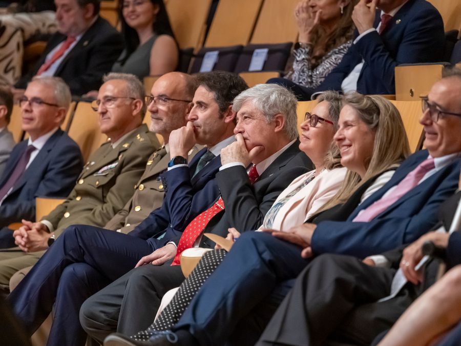 Larraz nombró también a colegas de otros colegios y asociaciones de ingenieros. “Todas estas personas, algunas ya fallecidas, han quedado como amigos entrañables. Todos ellos, junto a mi familia, representan mi patrimonio moral y todos deben ser partícipes del estimado galardón que se me ha concedido”, afirmó. El broche final a sus palabras estuvo dedicado a su esposa Elena, “compañera permanente, paño de lágrimas y cómplice necesaria”, a quien se le entregó el Lazo de Dama de Honor.