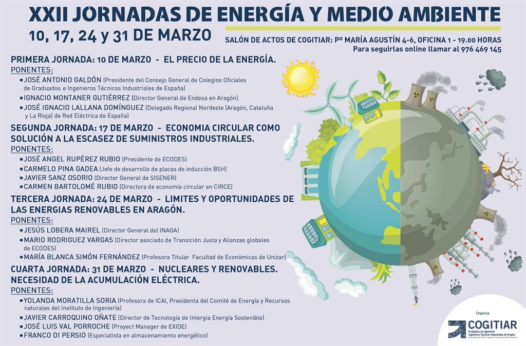 Los próximos días 10, 17, 24 y 31 de marzo, a las 19:00 horas, COGITIAR celebra las XXII Jornadas de Energía y Medio Ambiente. Las ponencias tendrán lugar…