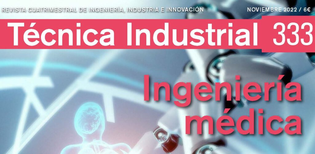 Ya se puede descargar el número 333 de la Revista Técnica Industrial correspondiente al mes de noviembre de 2022. En esta ocasión se profundiza, como tema principal, en la Ingeniería Médica y dentro de esta disciplina, nos habla sobre la “Ingeniería de tejidos” (rama de la bioingeniería que se sirve de la combinación de células, métodos de ingeniería de materiales, bioquímica y fisicoquímica para mejorar o reemplazar funciones biológicas) y la bioimpresión.