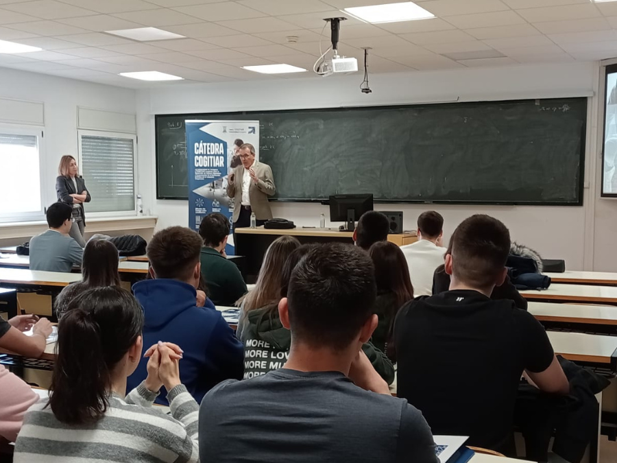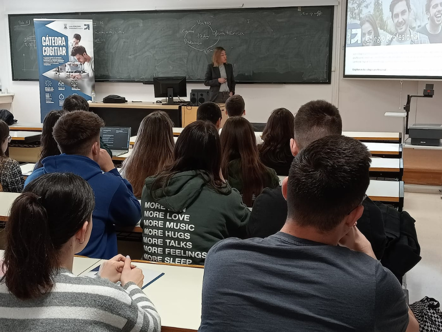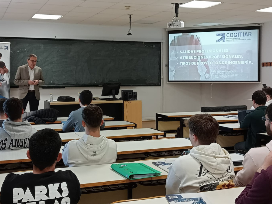 Por parte de COGITIAR, participaron Luis Labuena, gerente del Colegio, y Thais Bielsa, responsable del área de empleo, quienes hablaron sobre las salidas profesionales en el sector, servicios colegiales, atribuciones profesiones , ejercicio de la profesión y tipos de proyectos a realizar por los ingenieros. Un espacio muy enriquecedor en el que los estudiantes pudieron compartir sus inquietudes, resolver dudas y conocer más de cerca las oportunidades que ofrece el Colegio.