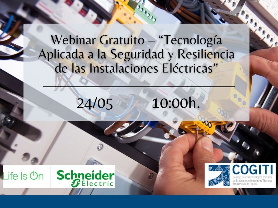 El Consejo General, los Colegios Oficiales y Schneider Electric continuamos con el ciclo de “Los miércoles tecnológicos” presentando el próximo Webinar Gratuito titulado «Tecnología Aplicada a la Seguridad y Resiliencia de las Instalaciones Eléctricas», que tendrá lugar el 24 de mayo de 2023 a las 10:00 horas.